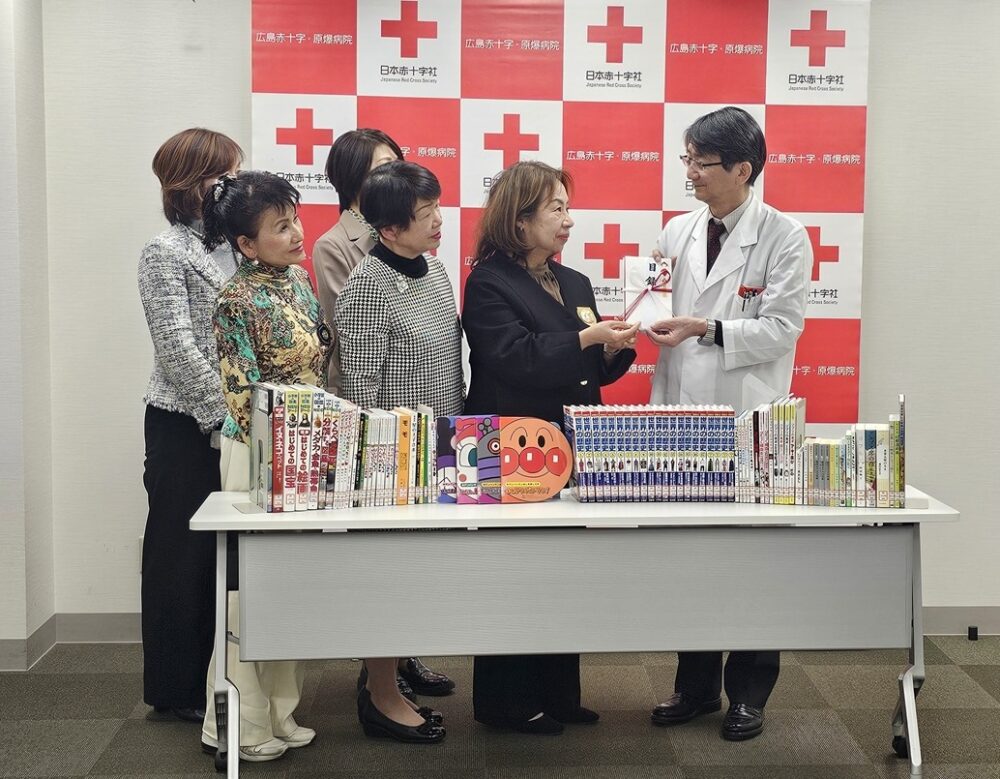 継続奉仕事業として4年目となる広島赤十字・原爆病院への図書寄贈の贈呈式が本年も行われ、児童書や絵本など約70冊の寄贈となりました。当日は中国新聞社の方にも取材いただき、この取り組みを多くの方に知っていただくよい機会となりました。